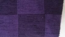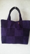 綿の紫と黒の経糸に、落ち着いた紫の絹の着物を裂いて織り上げました。