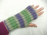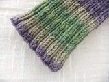 優しい色合いのラベンダーとグリーンの濃淡で編みました。