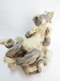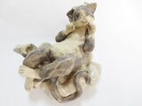 『画図百鬼夜行』に出てくる猫又(ねこまた)をモデルに制作しました。猫又は、年老いた猫が二本足で歩いたり、尾が二つに裂けていて、人を化かすこともあるそうです。