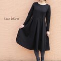 ┗襟やレースだけでなく、ポケットやファスナー、ボタンなど余計な装飾を一切はぶき、シンプルを極めたワンピースです。その分小物やアクセサリー、着る人を引き立てます。