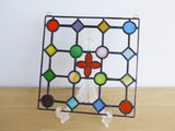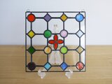 カラフルな丸や菱形模様が並んだモダンな印象のステンドグラス ミニパネルです。