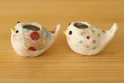 右の子はご売約済みです。信楽の白土を手びねりでとりを作りお花生を作りました。