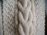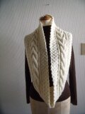 中央の縄編みが印象的なスヌードです。