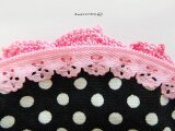 画像③:内布はルシアン生地のドット柄ブラックです。18cmのファスナーで開口部は広く、見えても可愛いレースタイプを使っています。