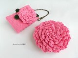 かぎ編みの薔薇モチーフを二枚重ね合わせた、両手に乗るサイズのポーチです。