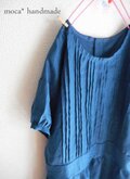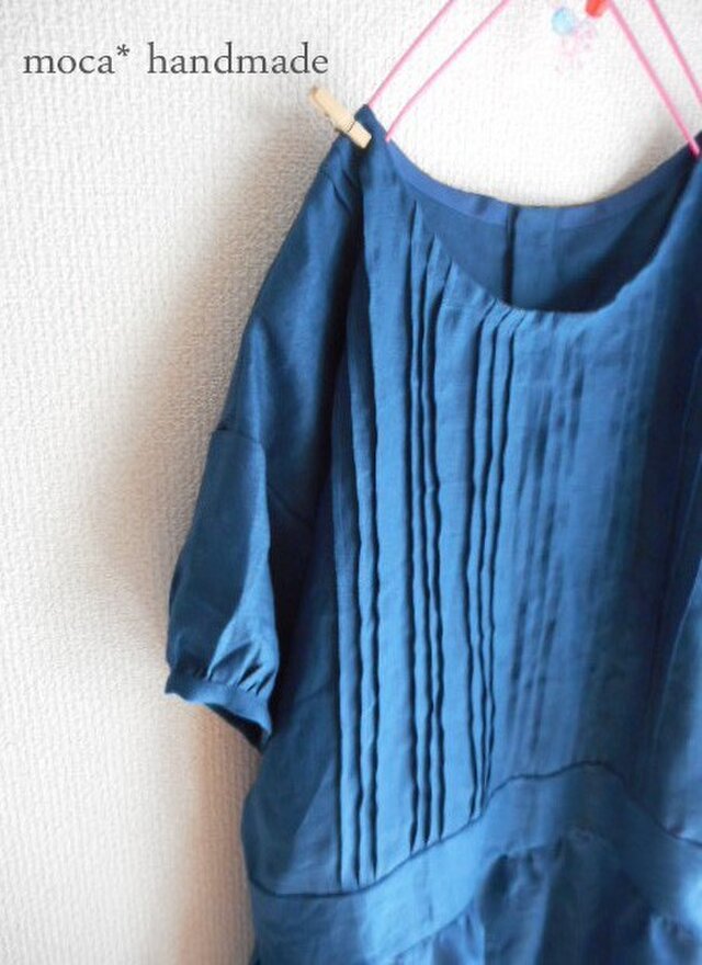パフスリーブ前ピンタックベルト切り替えリネンチュニックワンピース★スモークブルー