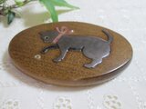蒔絵手鏡 銀色の猫とカタツムリ