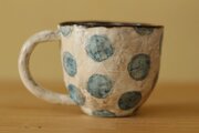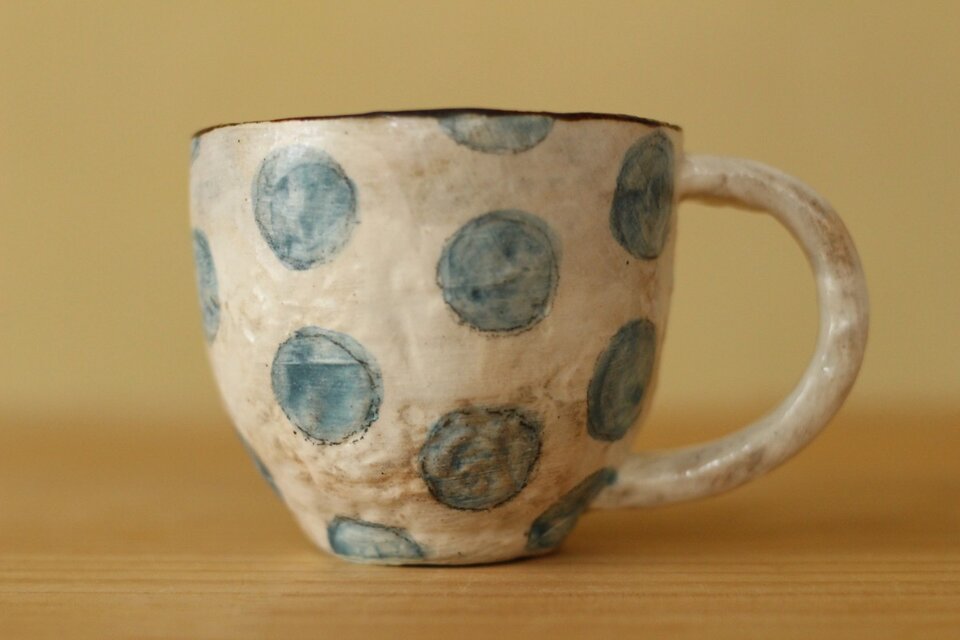 粉引き手びねりトルコブルードットのカップ。