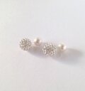 ラインストーンボールとコットンパールの2wayイヤリングです。
