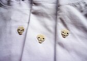 ガイコツをひとつ。胸元まんなかにぽつんと付けました。