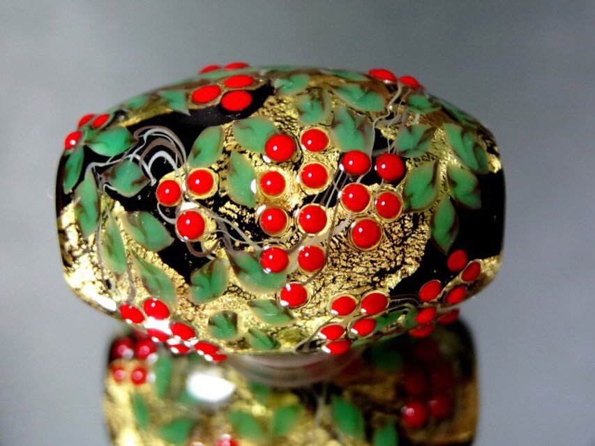 バーナーワークの技法で制作した、手作りのとんぼ玉です。