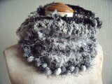 極太、極細、モヘア、ラメ等の数種類の糸を組み合わせたスヌードです。
