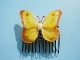 菜の花畑にひらひらと舞い降りたもんきちょうが髪にお花と間違えてとまっているみたい。なイメージでつくりました。