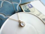 ネックレスはゴールドフィルド製(14KGF)で、日本人の肌色を美しく見せてくれるゴールド色です。長さの変更やアジャスター追加などのオプションもついています。