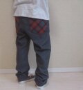 本体は無地のグレーですが、ポケットにはグレーベースのチェック生地を使用。