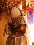 ゴブラン生地、ニット、レザー、フェザーなどを組み合わせたバッグです