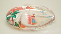 箸置き用のガラスの裏面にもみじとトンボを彫り込みました。