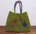 毛糸のアップリケ・もえぎ色かばん