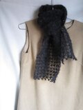 両端にはクローバーのような模様編みでフリンジをつけています。