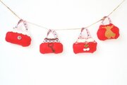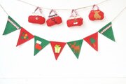 ★フェルトの三角フラッグにシールフェルトで作ったクリスマスモチーフを付けて可愛く仕上げたガーランドになっています。