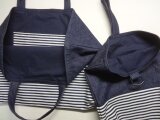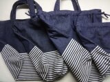 紺デニム生地に、紺白ボーダー生地を合わせて作成しました。