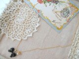 胸元でキラキラ輝く、まるでガラスのアップリケのような、リボンモティーフのネックレスです。