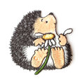 アップリケワッペン おすわりハリネズミとデイジー W-0358 針鼠 マーガレット UI