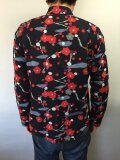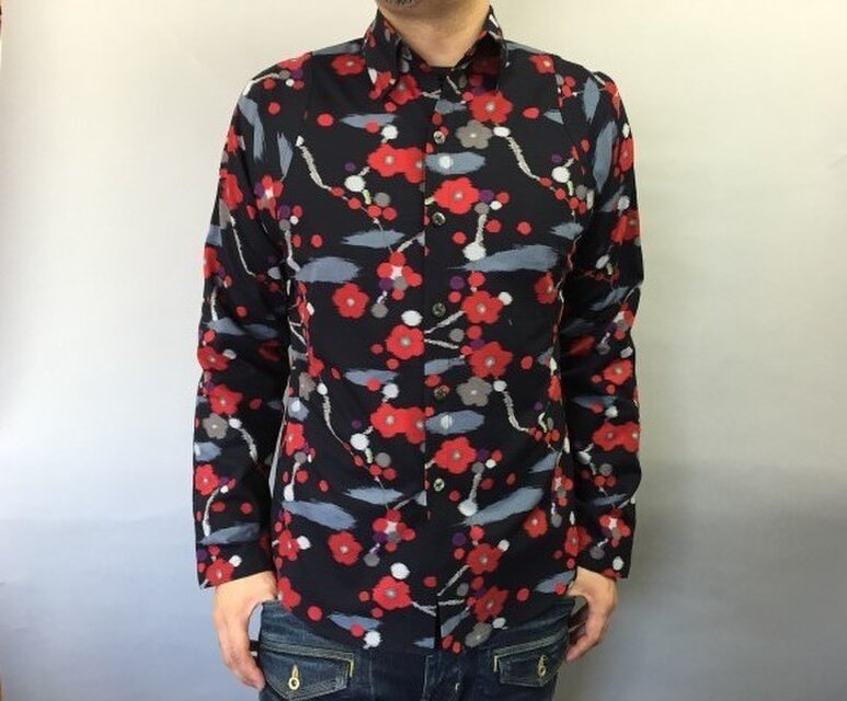 新作手作り長袖和柄シャツ(銘仙梅柄図)