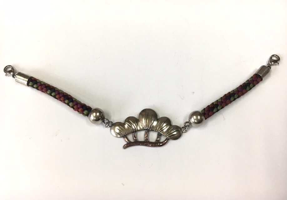 洋白と銅板を打ち出して作成した金具と正絹の組紐を組み合わせた羽織紐です。