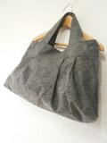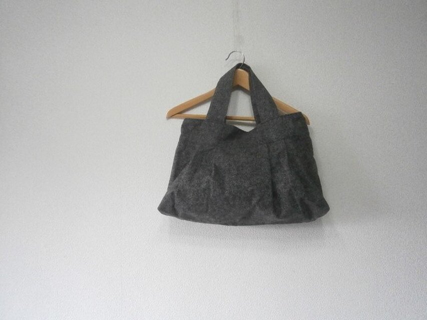 ウール・ヘリンボーン・黒グレー手提げ袋(最新,羊毛,財布,ケース,小物入れ)