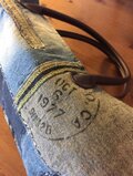 こちらのバッグは、たくさんのデニムの中から個性的なパーツを選び、1枚のシートにコラージュした新シリーズです。裏面の色合いや、赤耳や黄耳のステッチなど、楽しく組み合わせたデザイン。冬らしく配置されたニットは1本の糸から紡ぎだされたもの。手織り作家様のお洋服仕立ての際に出る素材をご提供していただきました。