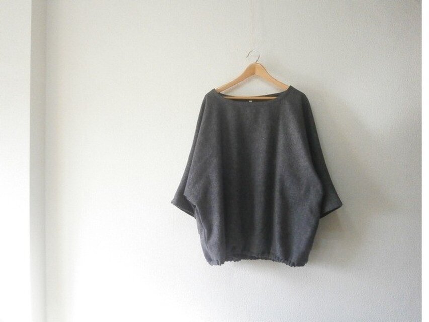 ★en-enウール・キモノスリーブ丸首・ネイビーグレー(新着,冬,羊毛,ウール)