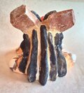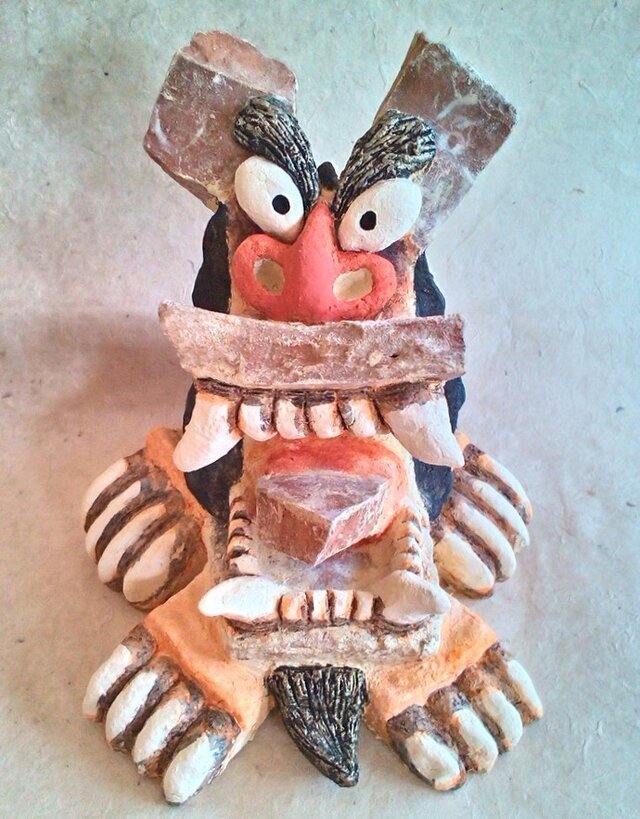 漆喰と赤瓦の欠片で造った魔除けのシーサーです。