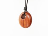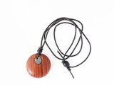 ペンダントトップの直径は約41mm、厚み19mm。全体の重さは19gです。ネックレス部(こげ茶丸革紐2mm)一周の最大長さは700mmほど。また、それ以下のサイズでの調整が可能です。