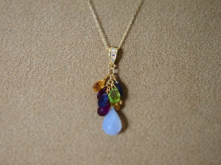 ブルーカルセドニー&カラーストーン シャポー ペンダントトップ