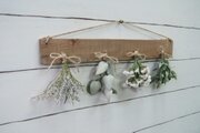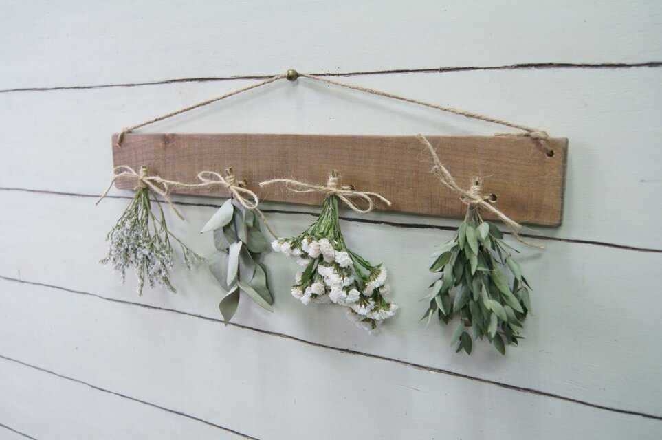 自家製ドライフラワーを古材風に加工した板にセットしました。