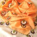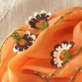 4辺ぐるりとレースの花付き コットンストール ライトオレンジ