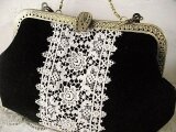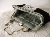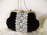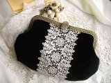 黒ビロードににアンティークギュピールレースをのせたがま口バッグ