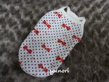 先程 受け取りました。 有難うございました。生地の裏表を上手に使っていて、とってもかわいく ムギに良く似合い気に入りました。 結構 伸縮の良い生地だったので 首周りがもう少し細くても 良かったかもしれません。でも、ゆったり着れるので 大丈夫ですよ。今日は、こんなお天気なので 無理ですが 晴れている日にこれを着て お出かけしたいと思います。 ほんとに有難うございました。