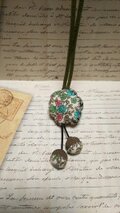 ブルー、グリーン、ピンクの色が入っていてビーズはシルバーです。
