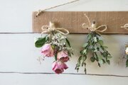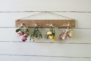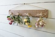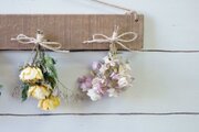 自家製ドライフラワーを古材風に加工した板にセットしました。