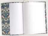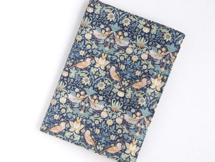 リバティの人気生地、Strawbery Thief ストロベリーシーフ(グリーン)のラミネート生地(つや無)でA5サイズのノートカバーを作りました。