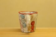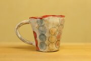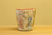 信楽の白土を手びねりで成形し白化粧を施しカラフルドットをランダムに配列させました。