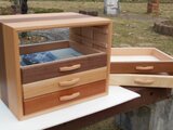 引き出しの前板は上から・・チーク・トチ・ウォールナッツ・カバサクラ・南洋サクラ