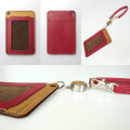 [5色] 木と革のパスケース(ベルトとキーリール付)ICカード使用可