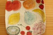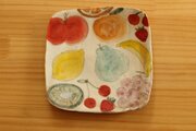 信楽の白土に白化粧を施しカラフルフルーツを絵付けにしました。
