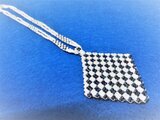 伝統的な市松模様のペンダントを、本来の2色(白と紺)のビーズで作りました。