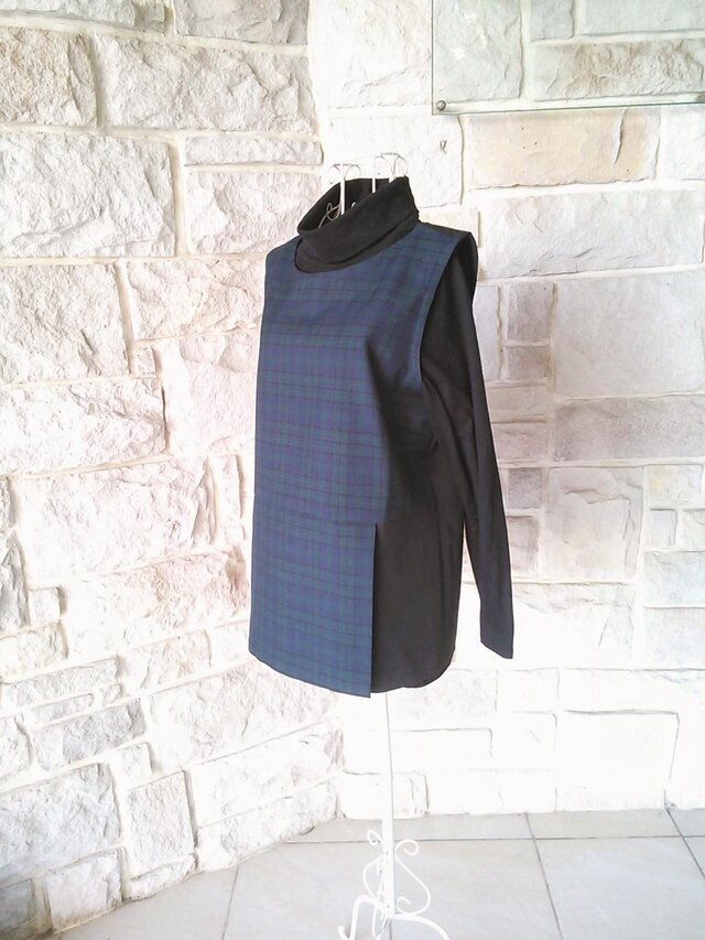 【春秋冬】小さめブラックウォッチ チュニックベスト ツートン切替え