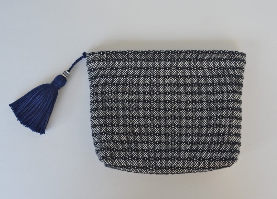 伝統的な柄を元にオリジナルな要素を加え織ったポーチです。