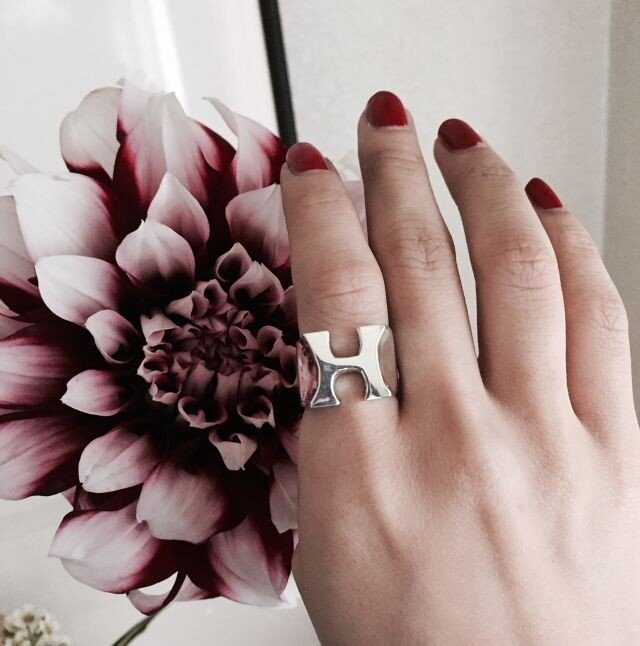✴︎太めのメンズライクなシルバーリングです。自分のイニシャルはもちろんペア、カップルでお互いのイニシャルを身につけても素敵です♡プレゼントにも喜ばれます(^^)